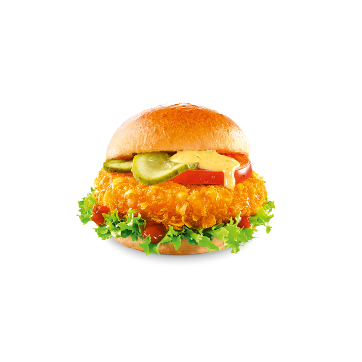 Unser Chicken Burger mit noch mehr Crunch, ein echter Genuss für alle, die es saftig und KNUSPRIG lieben. Ein goldbraun gebratenes, knuspriges Chicken-Patty trifft auf frischen, knackigen Lollo Bionda, saftige Tomatenscheiben und fein geschnittene Gewürzgurkenscheiben. Verfeinert wird das Ganze mit unserer unwiderstehlichen Honig-Senf-Sauce und fruchtigem Tomatenketchup. Alles zusammen gebettet in ein weiches Bun - ein Burger, der bei jedem Biss begeistert!